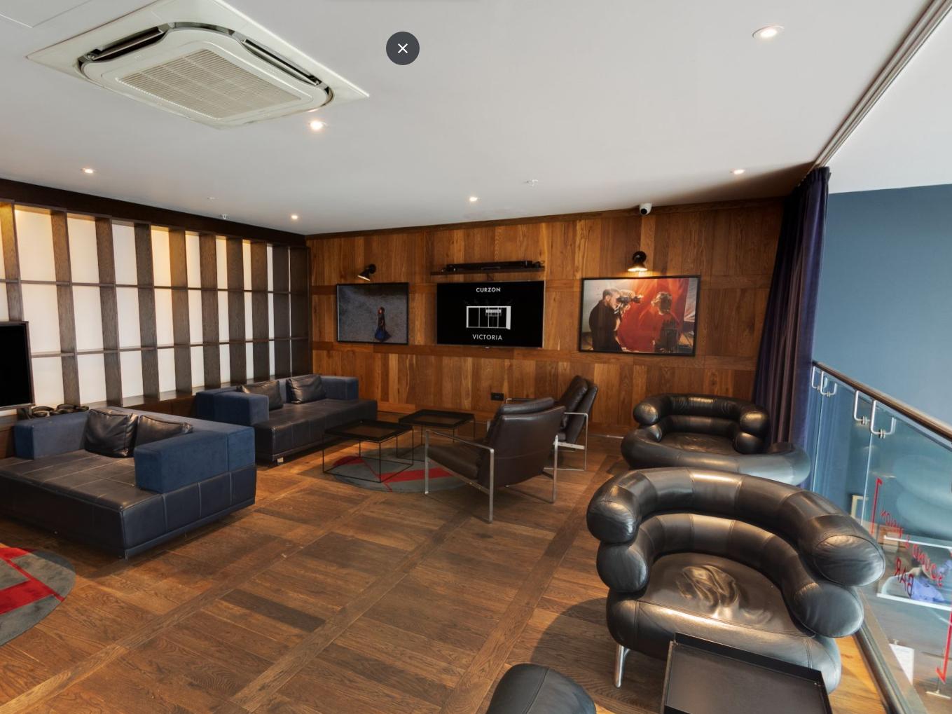 Perfect for pre-show gatherings or a mid-film intermission, the Mezzanine provides an elegant backdrop for conversation and relaxation. The area is accentuated with bold geometric rugs that echo the cinematic passion of the venue. The inclusion of large-screen televisions ensures that the allure of film is never too far away, even as you sip a cocktail or enjoy a casual meeting. The Mezzanine at Curzon Victoria is truly a space where luxury and leisure converge, offering guests a unique cinema experience beyond the main auditoriums.