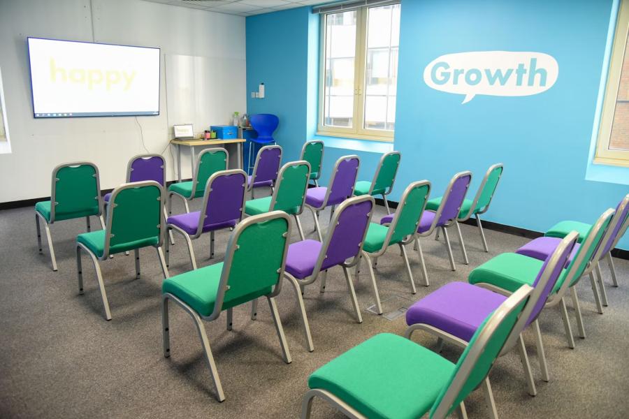 Room 2, Inspiration, has two whiteboard walls, making this the perfect space for brainstorming and workshop activities. It can accommodate up to 15 people in cabaret style, or up to 20 people standing.