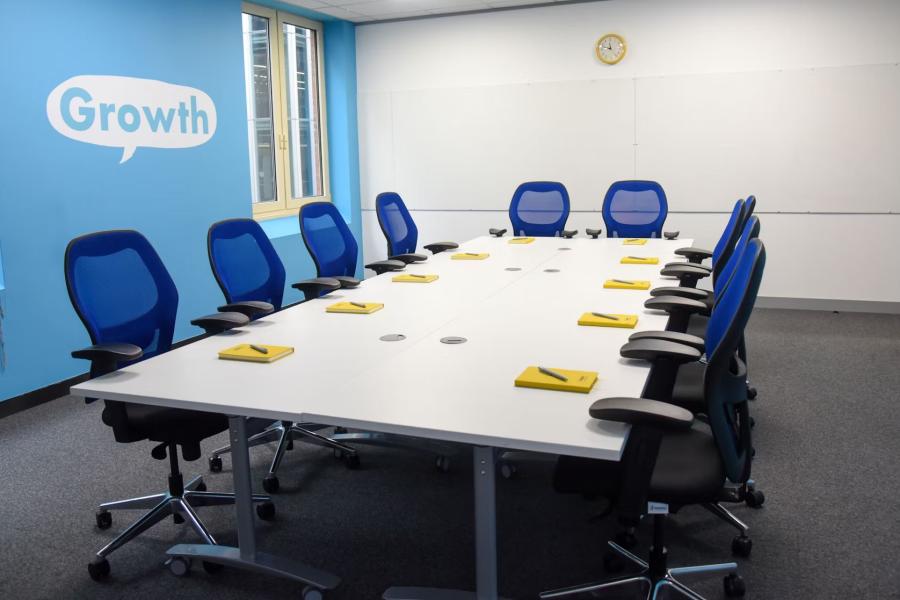 A large whiteboard and 1 whiteboard wall, giving you space for lots of annotation, brainstorming and interactive activities.