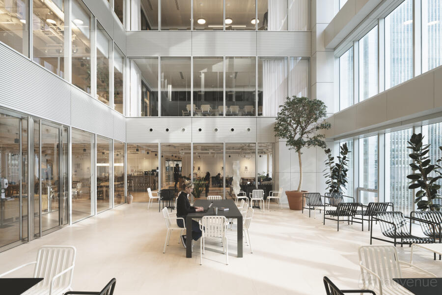 Churchill Place, WeWork’s venue in Canary Wharf, is situated in a prime location, in a striking 20-story tower in the centre of the district. It consists of two adjoining spaces separated by a glass wall that work together seamlessly.