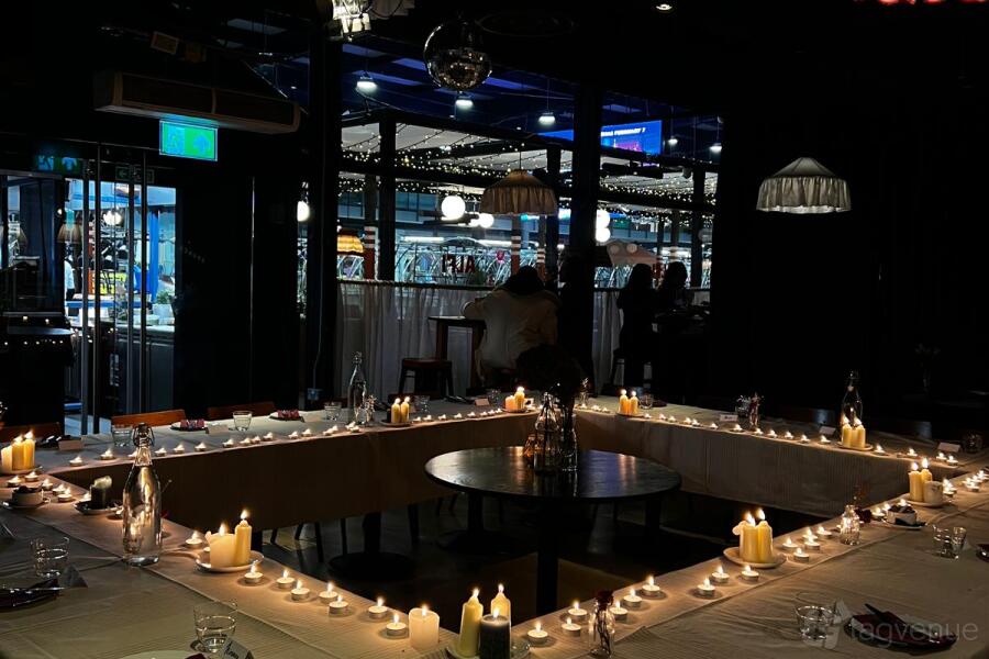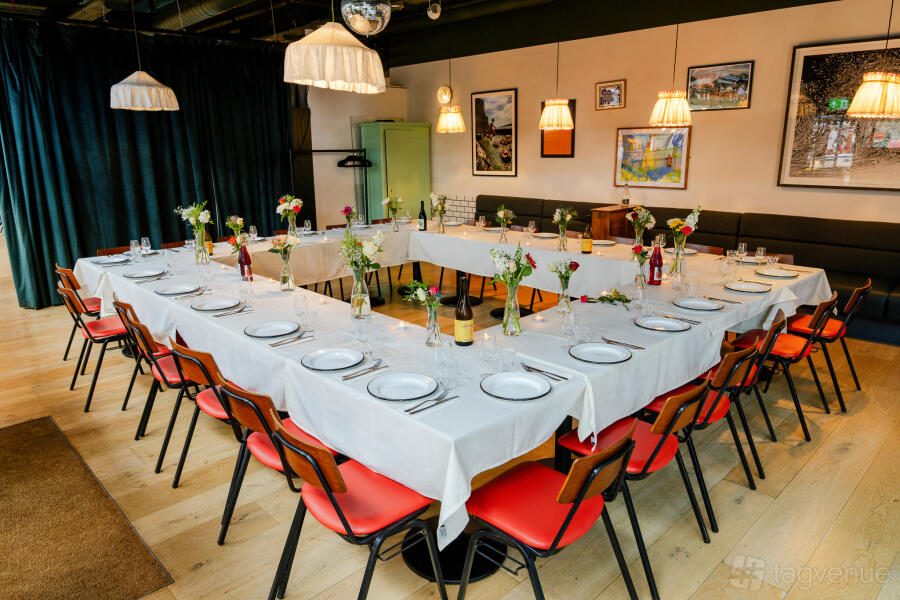 It’s perfect for smaller groups (up to 26 guests) and works just as well for an intimate dinner as it does for a birthday with a few bottles of fizz. One long table keeps everyone together, so you can eat, drink, and laugh without missing a single moment.