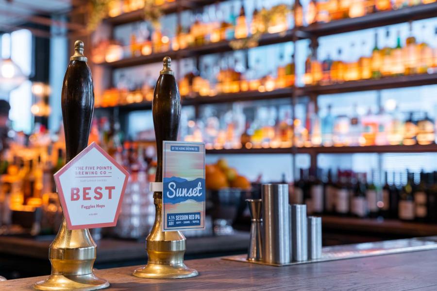 As you walk into the venue, you will be greeted with a traditional English pub with an array of popular lagers and ciders and a fully stocked back bar with all your favourite spirits!