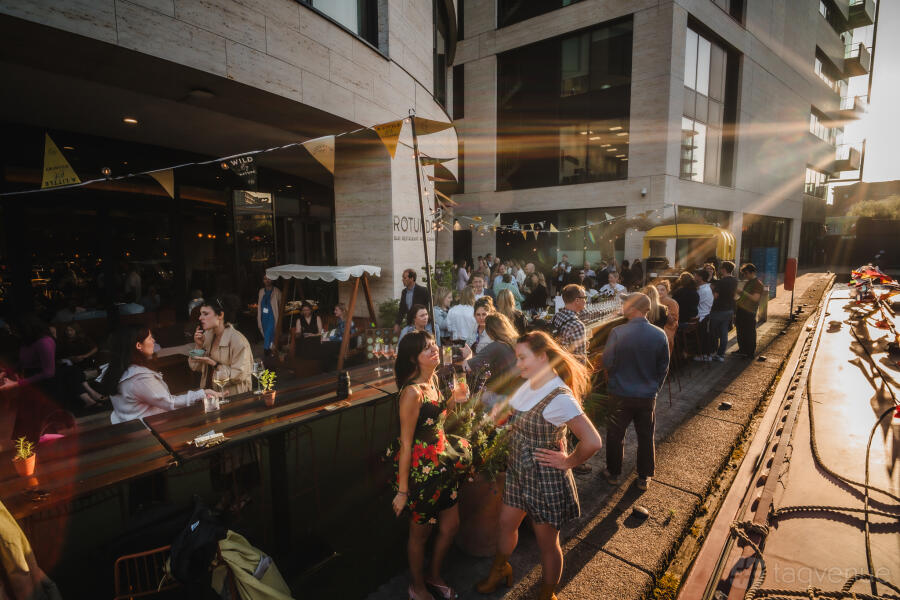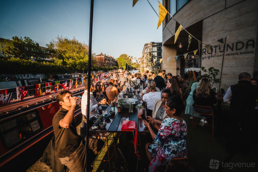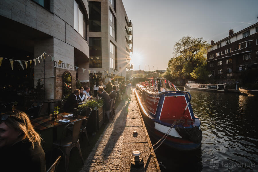 Rotunda bar and restaurant, nestled within Kings Place, a vibrant hub of music, arts, and performance, conveniently situated just behind the bustling Kings Cross station, offers a captivating experience. As you step into Rotunda, you're greeted by expansive floor-to-ceiling windows that frame picturesque vistas of Regent’s Canal, casting a serene ambiance throughout. Step outside onto our spacious terrace, an idyllic retreat during the balmy summer months, where you can bask in the warmth of the sun while enjoying your meal.