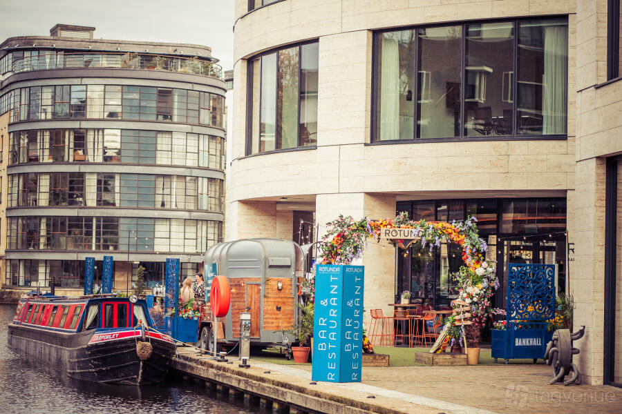 Throughout Rotunda, we have large floor to ceiling windows with beautiful views overlooking Regent’s Canal and a large terrace perfect. Our menus are modern British and revolve around beef and lamb that comes from our own farm in Northumberland. Our venue can hold up to 250 people for a standing reception