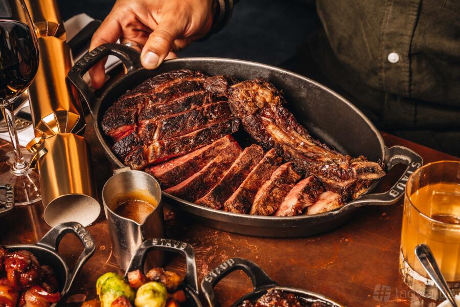 Menus are all served family-style - with the steaks cooked to order, sliced and served in cast-iron skillets with our legendary sides and sauces. Sharing puddings complete the feast. You can also select additional items to enhance your meal, add a cocktail reception beforehand, after-dinner drinks, or even gifts for your guests to take home.