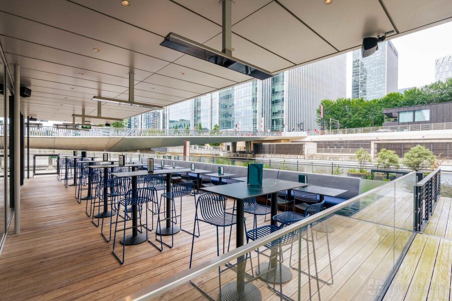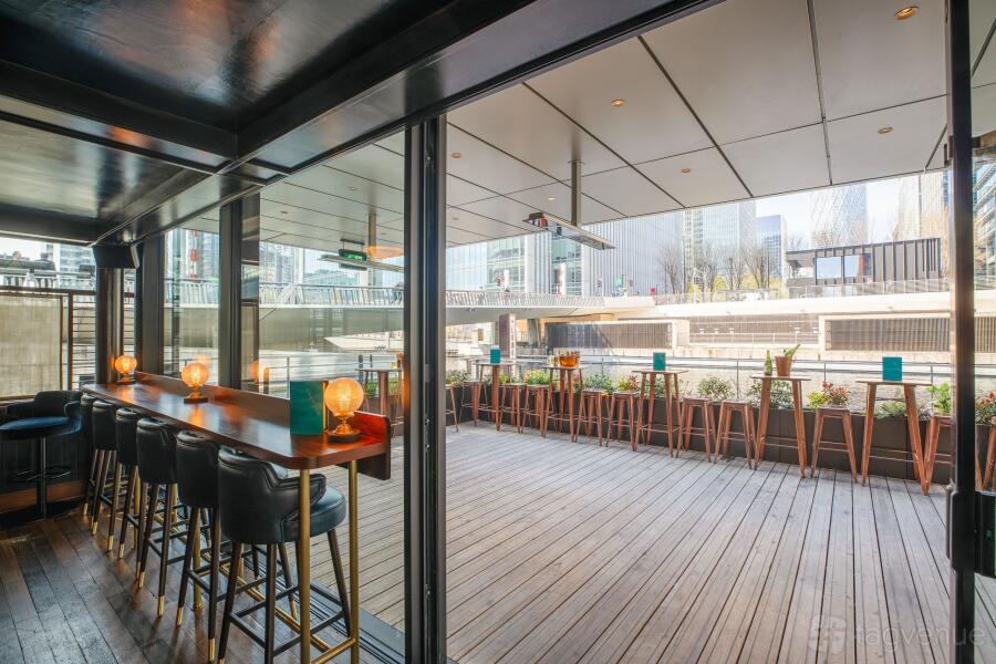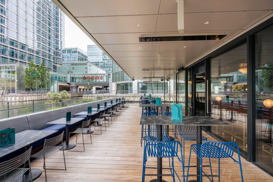 Our waterside terrace hosts standing events year-round. It’s heated, with comfortable seating, its own sound system and dramatic views of Canary Wharf.