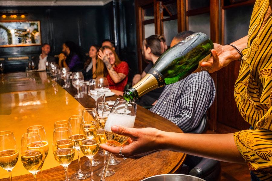 Our downstairs bar seamlessly blends with our upstairs restaurant—meaning you can get the full Hawksmoor experience both in the restaurant and downstairs in the bar.