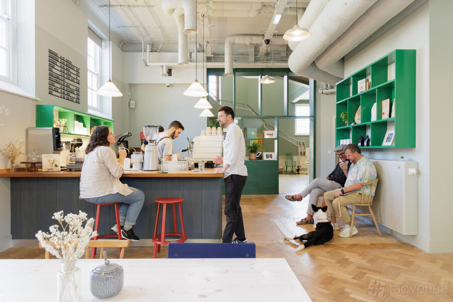 Alongside our flexible coworking studios and private offices, our event spaces are available to hire by the hour, offering characterful, inspiring environments for meetings, workshops, and team off-sites. We’re also home to Django’s café, serving specialty coffee and fresh food daily.