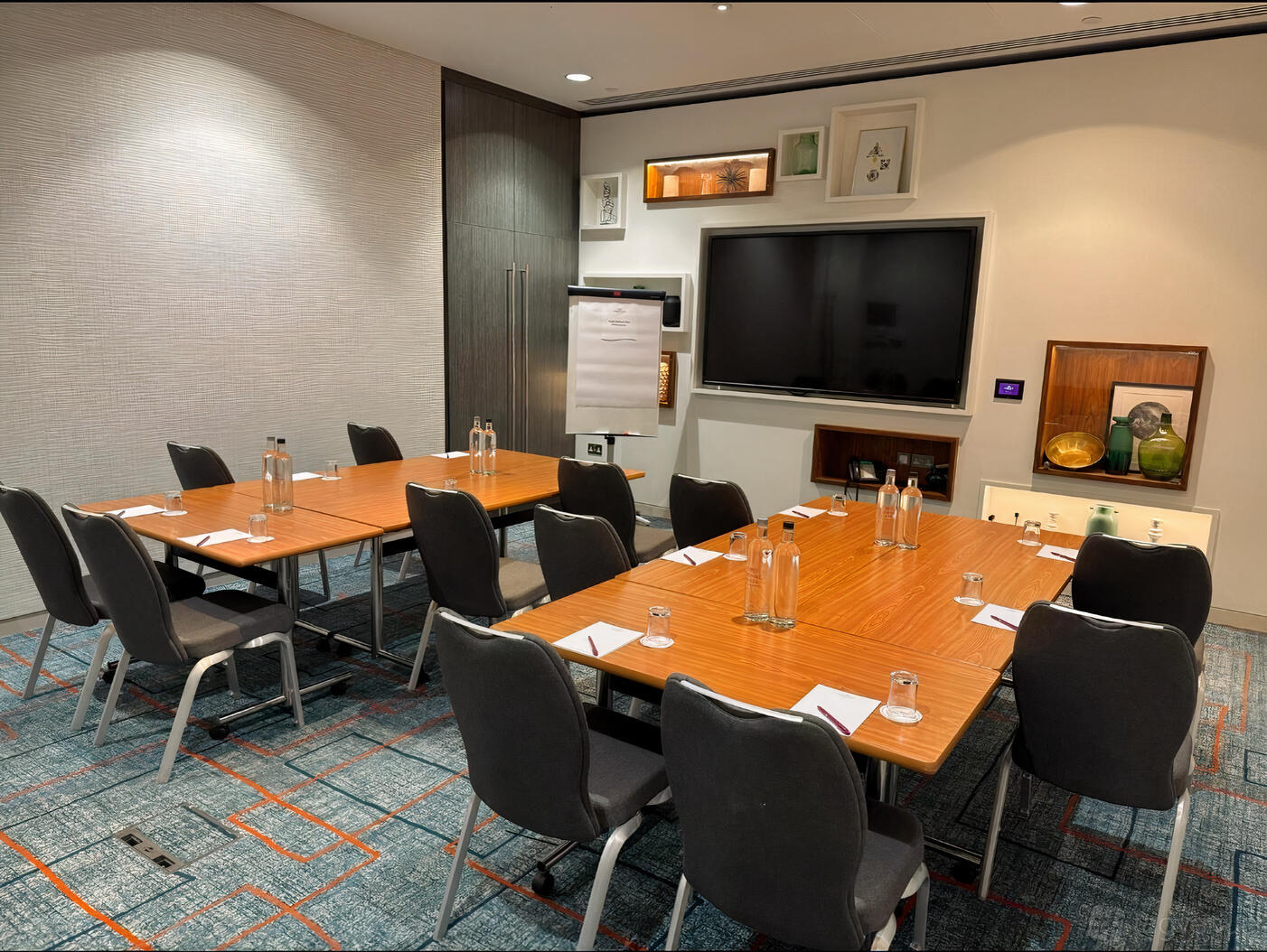 The Marylebone Suite is located on the ground floor and is designed with a bright and contemporary style. It comfortably accommodates up to 30 guests in a theatre-style setup, making it ideal for various events and meetings. The room boasts direct access to a shared lobby area, where refreshments can be served, and features relaxed seating to create a welcoming environment for attendees.