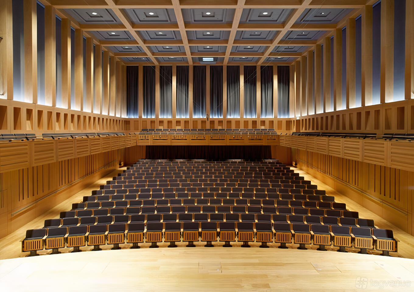 Hall One boasts excellent acoustics, making it suitable for both performances and conferences. This ensures that speakers will feel like the star of the show. The space includes balcony-level seating and maintains an intimate atmosphere during events. Remarkably, the wood from a single oak tree was used in its construction, not only creating a stunning setting but also ensuring consistent wood density for perfect acoustics.