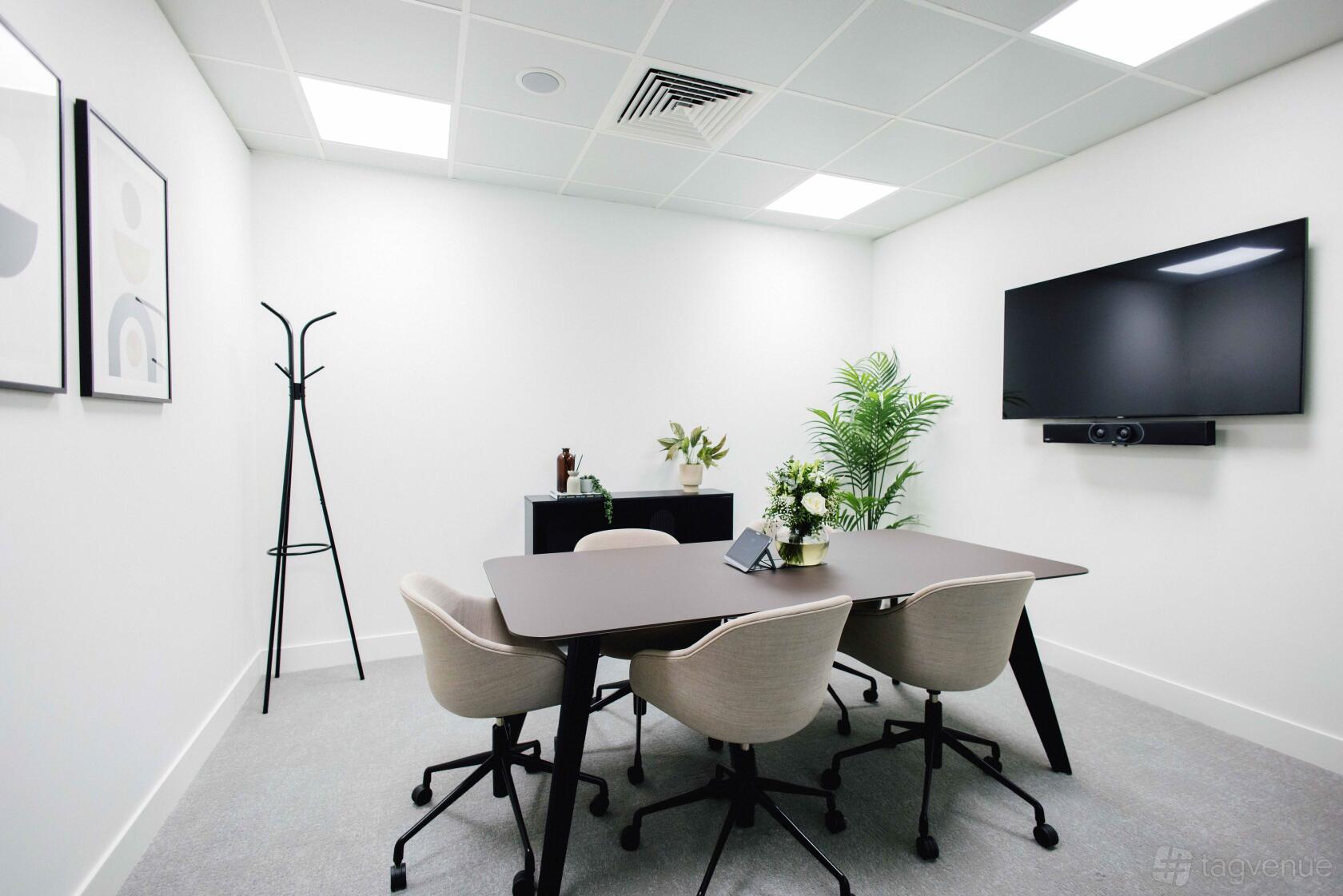 The Mitre meeting room is set up to comfortably hold up to six people. Soft, neutral tones dominate the room, creating a calming ambiance.