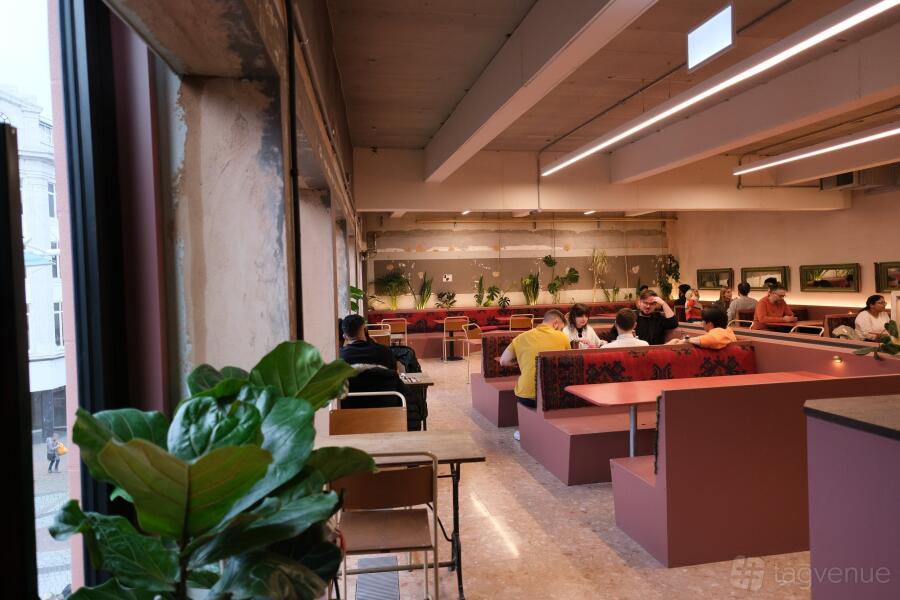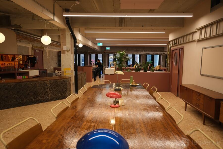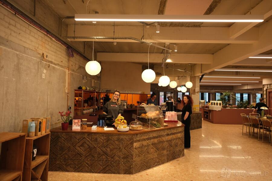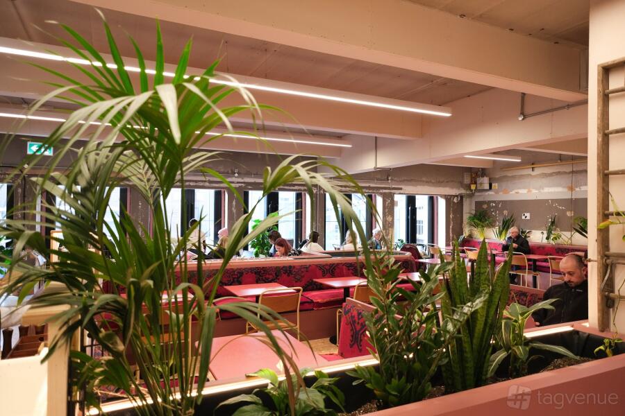 This rooftop venue also features a community garden, adding charm and a sense of sustainability with its thriving plants and urban biodiversity. A dining area and cozy sofas create spaces for meals and socializing, while the bar serves a selection of beverages, perfect for cocktail receptions. Combining versatility and natural beauty, The Rooftop is ideal for hosting unforgettable occasions.