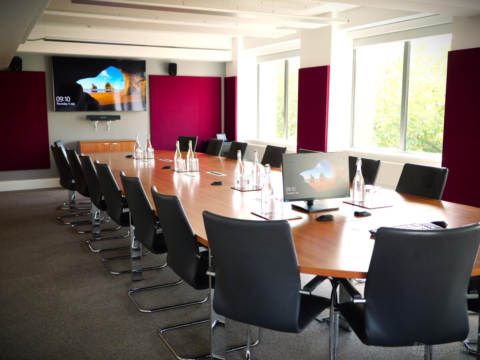 Meeting Room 6 is perfect for board meetings, interviews, training events, private dinners, and team away days, with a capacity of up to 20 people in a boardroom setup. The room is equipped with a flatscreen TV, flipchart, speakers, conference call facilities, natural daylight, and air conditioning.