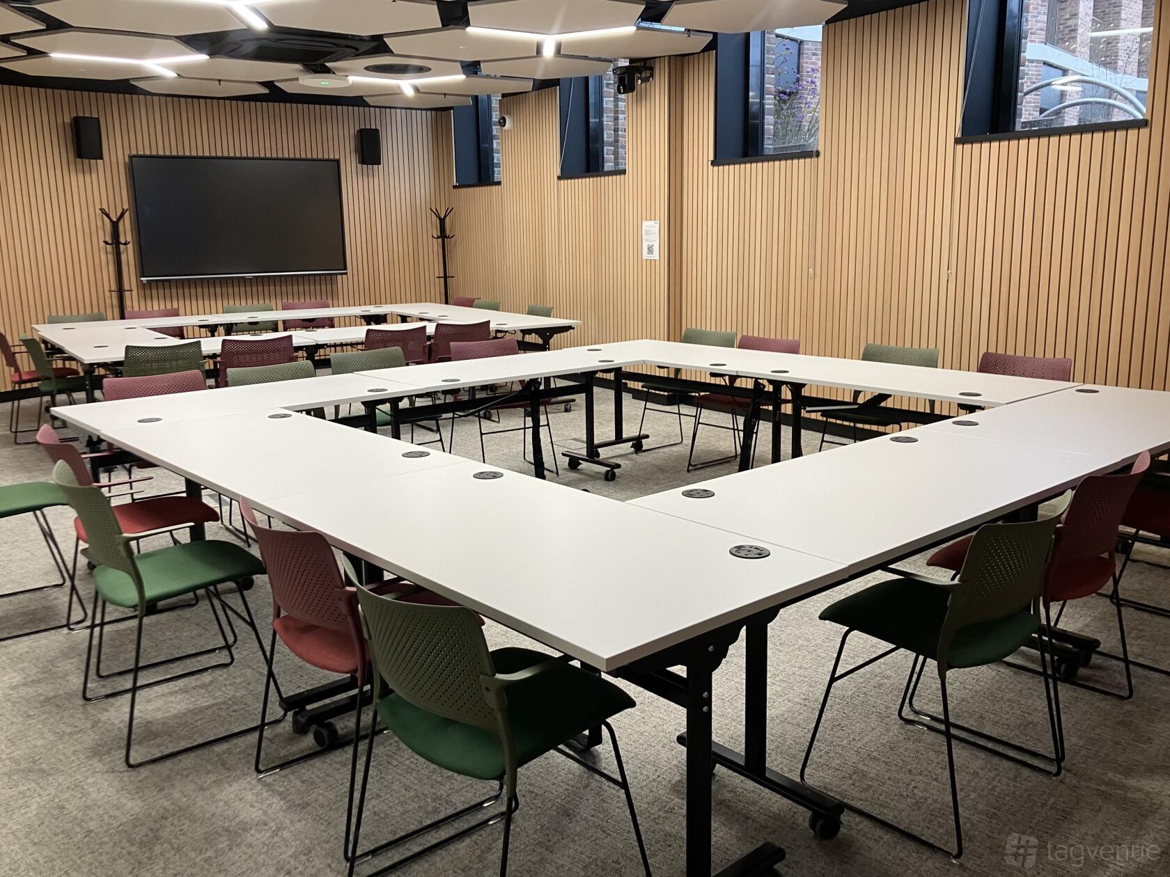 This air-conditioned classroom is equipped with two large screens, comprehensive Wi-Fi coverage, and advanced AV systems, making it an ideal space for meetings, presentations, and training sessions.