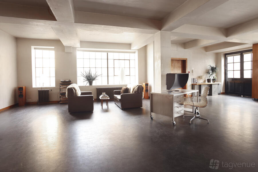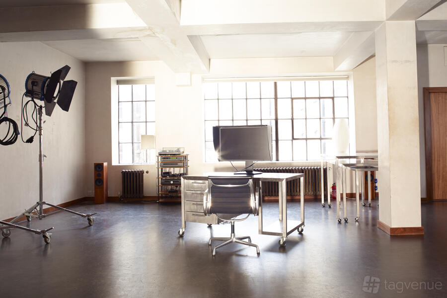Concrete floors and work surfaces, stainless steel prep tables, a full kitchen, and a bathroom with a shower make it supremely practical. A great Linn/ Arcam hi-fi system means you can bring your vinyl or stream full-bandwidth Tidal music and our Gaggia espresso machine means you’ll only have yourself to blame if the coffee isn’t perfect. We offer great deals on a range of Broncolor flash and Arri Tungsten lighting.
