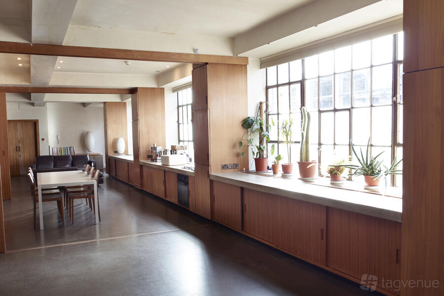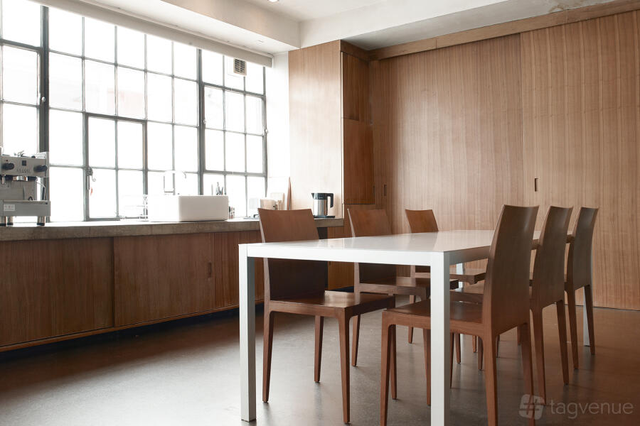 Studio 1 is a 142 sqm film and photographic studio with an apartment/lifestyle feel. It can accommodate up to 80 people. It features a mid-century modern style designed by renowned architect Spencer Fung. The studio has a concrete floor and work surfaces, as well as walnut sliding doors that divide the space, creating breakout areas.