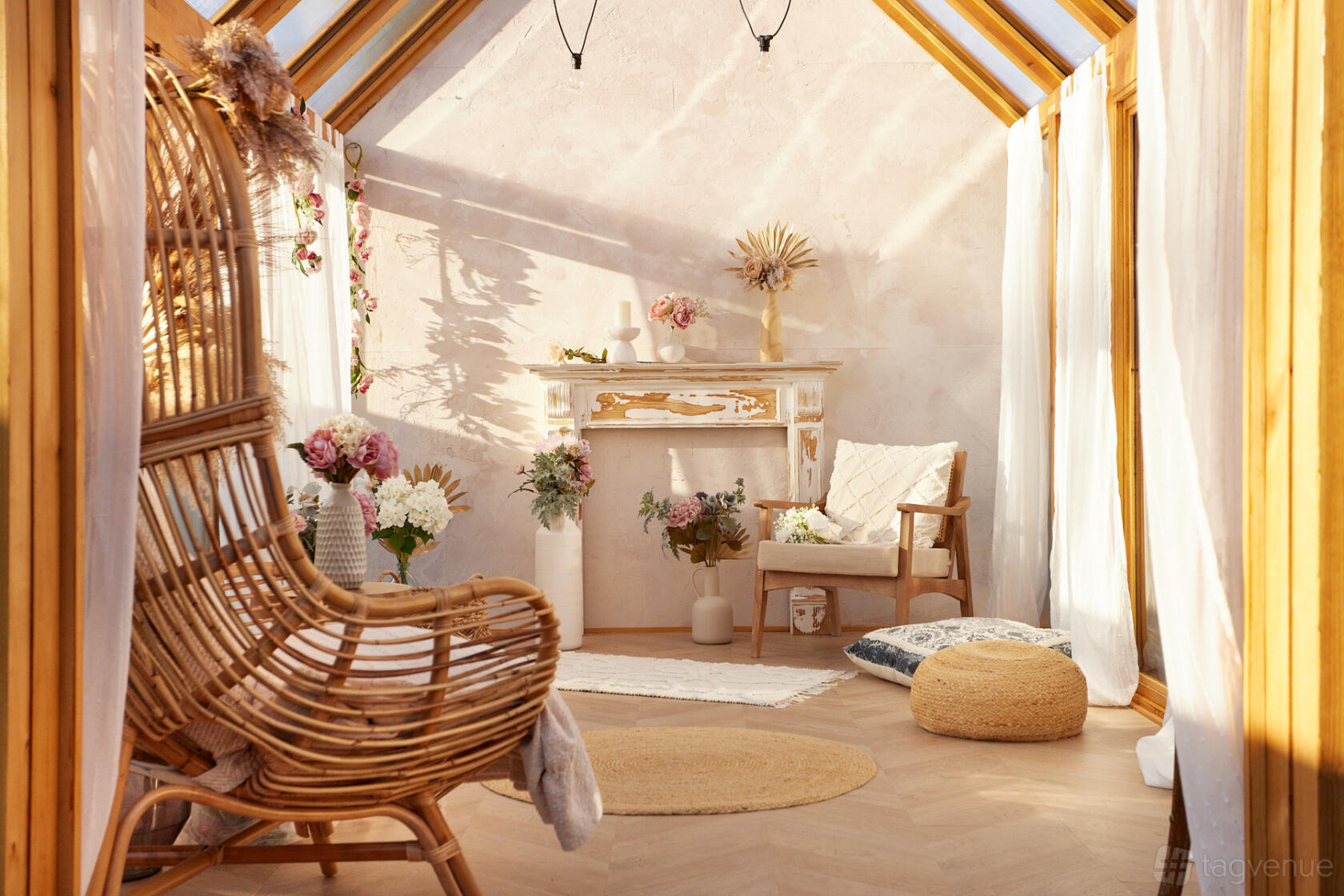 This stunning, purpose-built studio is designed for photography, videography, and content creation, offering a lifestyle atmosphere perfect for creatives. The space is bathed in beautiful natural light all day, every day, enhancing the quality of every shoot. Its unique glass house design, paired with boho-style decor, gives your content an exotic feel, as though it were shot in another country. The studio maintains its charm even after dark, providing a visually appealing backdrop at any time of day.
