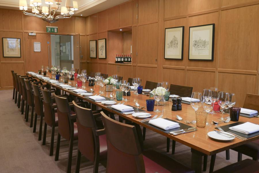 The Marcus Beck Library is one of the many heritage treasures found at 1 Wimple Street. This private meeting room dates back to 1912 and has a large library of rare medical books lining the walls. The room seats up to 30 people in a unique horse-shoe formation and features impressive oak parquet flooring, a marble fireplace and air conditioning. Due to its historic heritage, this room sets itself apart, making it the perfect location for formal board meetings, corporate dinners, and both online and hybrid presentations, training and team building.