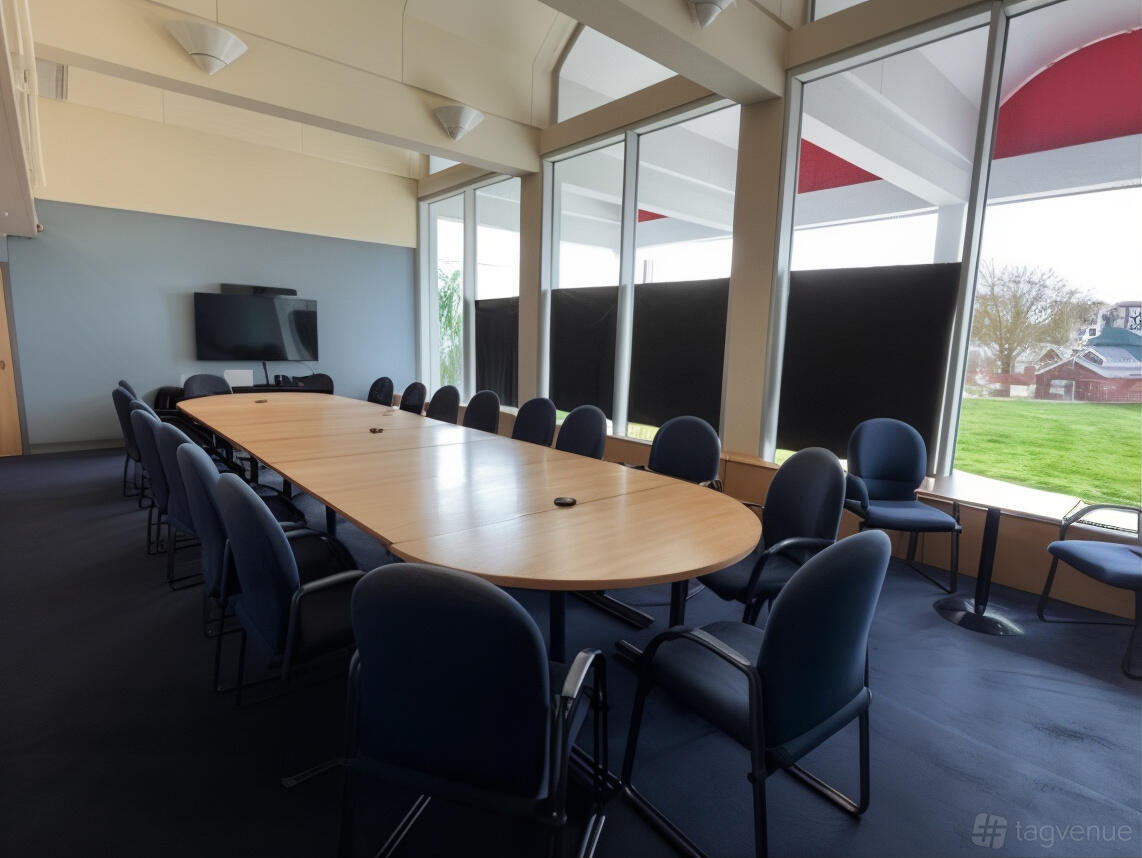 Featuring floor-to-ceiling windows, the bright and airy first-floor boardroom accommodates seated groups of up to 20, ensuring a comfortable and inspiring environment for discussions and decision-making.