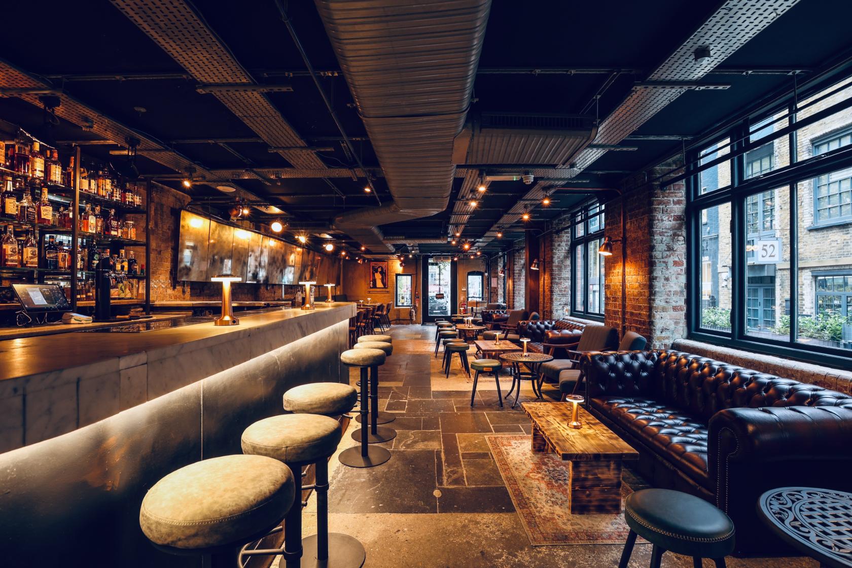 The ground floor hosts multiple distinct areas, including a main dining and cocktail lounge, cosy sofas, and a welcoming lobby. It features an inviting corner marble bar as well as a spacious island bar with stools, ideal for social gatherings and cocktail tastings.