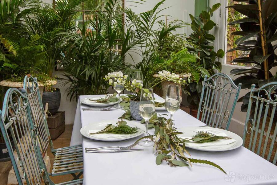 The Café glasshouse and terrace is an event space with a capacity of up to 90 guests. This area has been used for a number of different events including ceremonies, weddings receptions, dinner parties, baby showers, and media launches.