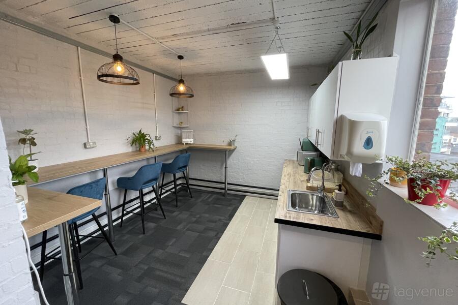 On-site kitchenettes provide complimentary coffee, tea, and biscuits. A rooftop garden offers a peaceful space for breaks, fresh air, or informal gatherings.
