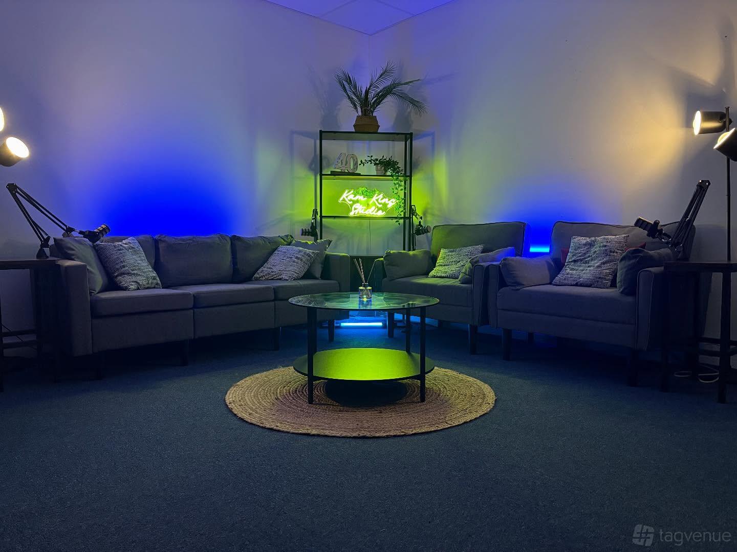 Kam King Studio’s podcast room is a professional, fully equipped space designed to bring your audio and video productions to life. Our modern equipment includes 4K Sony A7iii cameras, professional studio lighting, Rodecaster mics, and a Rodecaster Pro II mixer for top-quality recording. Flexible packages cater to your needs, from basic recordings to full editing services and social media clips