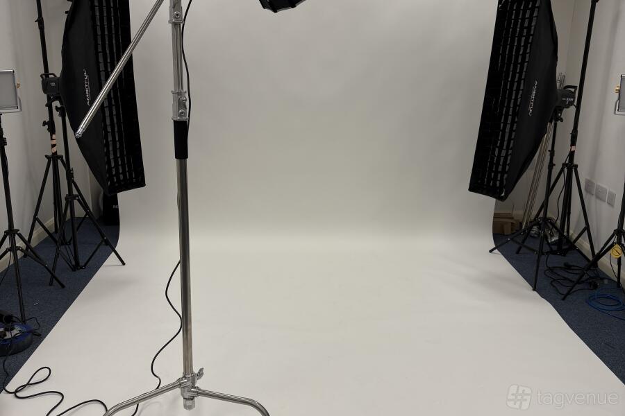 The studio features high ceilings, professional lighting equipment, and a range of backdrops and props. It's suitable for shooting a fashion editorial, creating a commercial, or capturing portraits. We also have a podcast space with all the latest equipment.