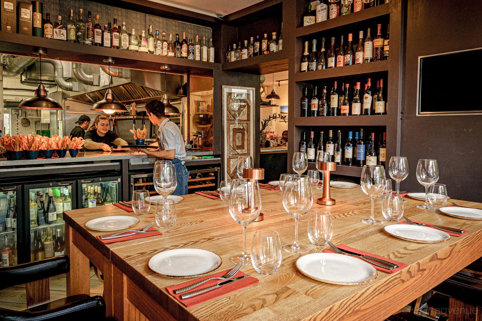 A semi-private area in front of the open kitchen, ideal for intimate parties of 8-10 guests, offering a firsthand view of the culinary action.