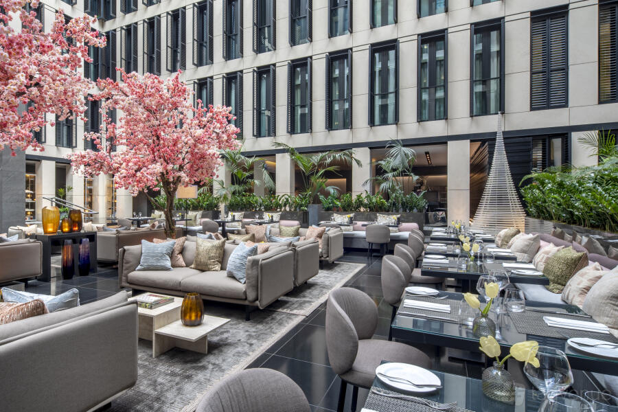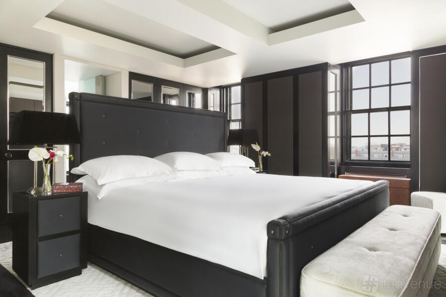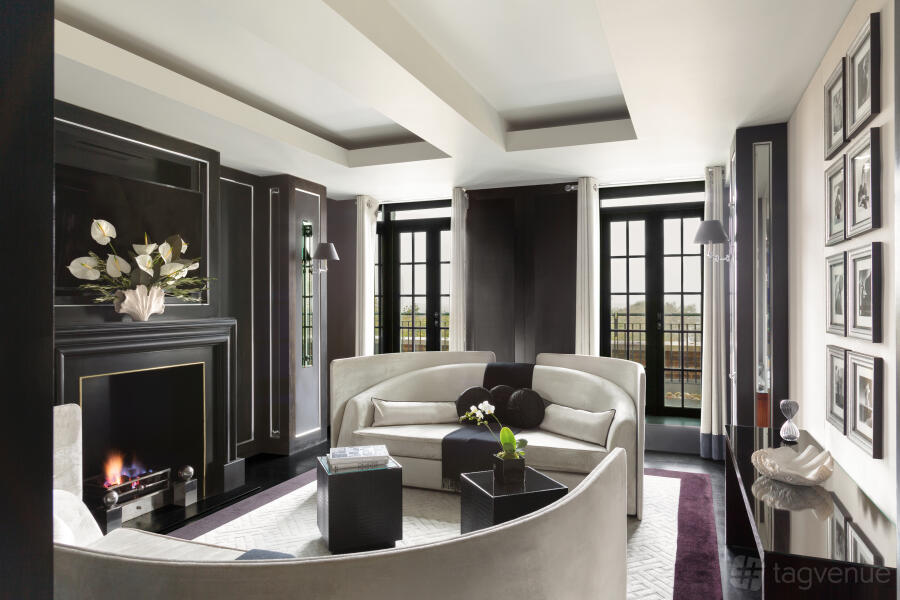 The Grosvenor Penthouse is the largest of the top-floor residences, offering expansive space and refined interiors. Ideal for entertaining small to medium-sized groups, it features five en-suite bedrooms with rain showers and deep soaking baths, multiple living and dining areas, and a balcony with views over Hyde Park.