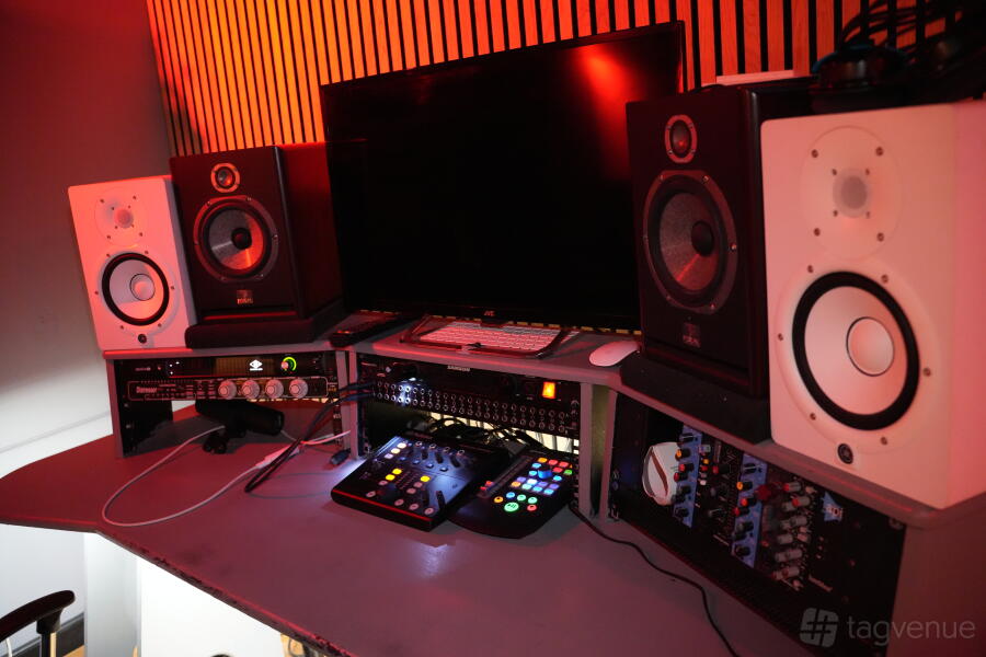 Our Blue studio is a great environment to create and inspire. With a variety of amazing outboard gear, you’re sure to capture the essence of your creativity. It is ideal for producing, recording, podcasting, and anything else.