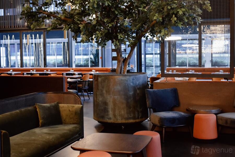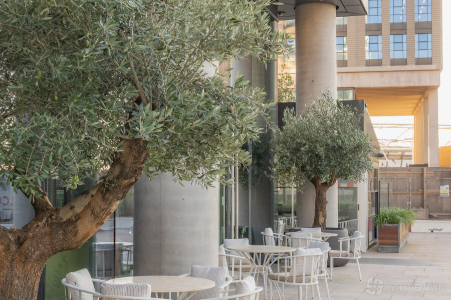 The sophisticated space includes a stylish cocktail bar, an open-plan kitchen, and a spacious dining area. Floor-to-ceiling windows fill the room with sunlight, while the kitchen's aromas transport you from London's streets to Greece.