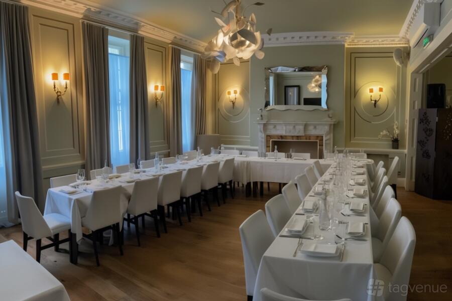 The Elysée offers a fusion of classic and modern Greek and Mediterranean cuisine. Located at 13 Percy Street in London, the restaurant provides multiple spaces for private hire, including the ground floor dining area, upstairs Lounge & Bar, two Dining Rooms, and two outdoor Roof Terraces.