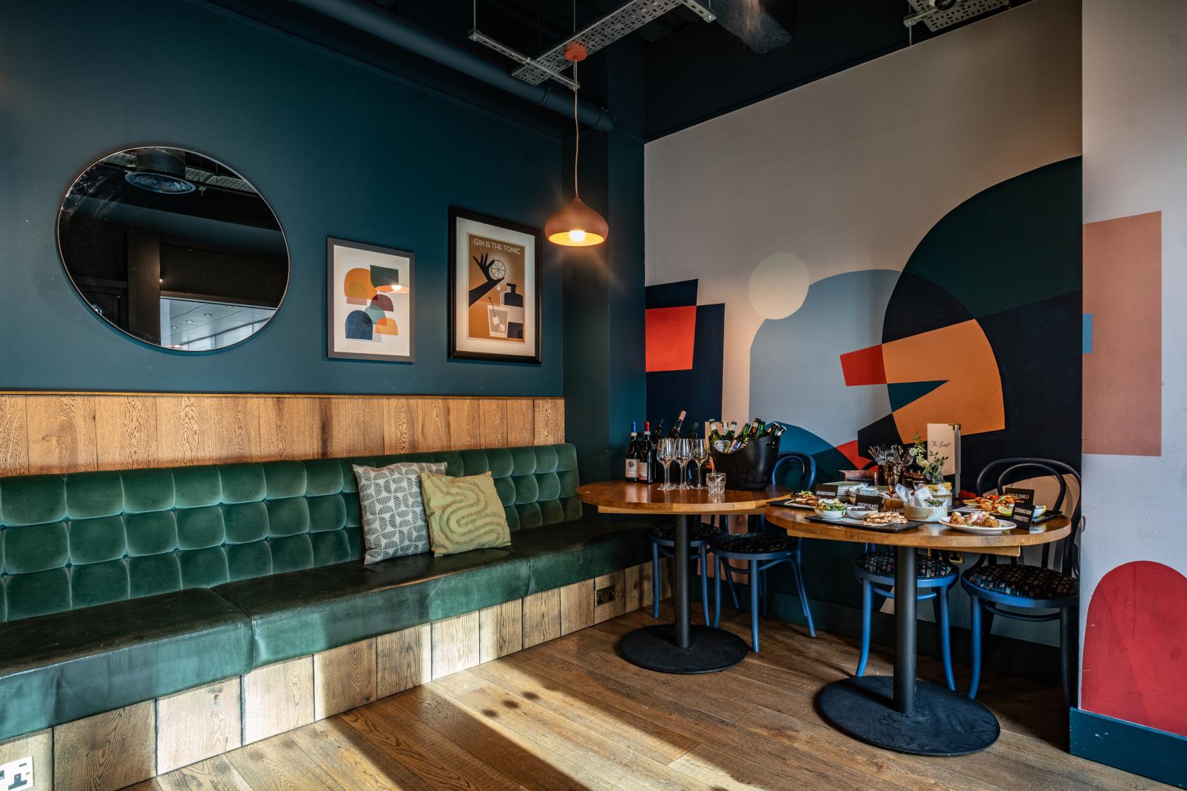 The Snug is the ideal spot, just slightly removed from the main bar that can open up onto the courtyard for that alfresco feel. Its cozy ambiance makes it perfect for intimate gatherings or a quiet retreat within the bustling venue.