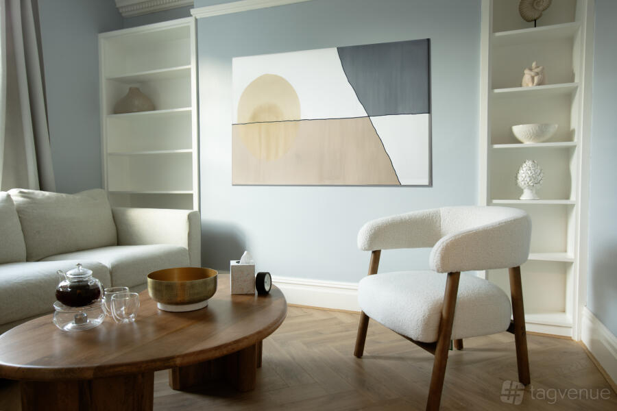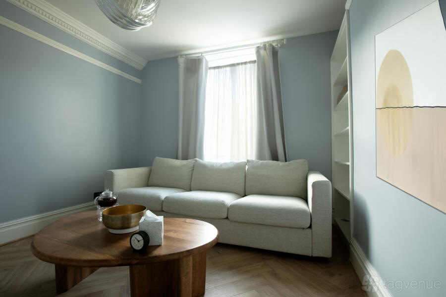 The Hawthorn Room is a tranquil and stylish space located in Angel, on the third floor, designed to foster a sense of calm and meaningful connection. With natural light, the room is thoughtfully furnished with a spacious sofa, a cosy cream armchair, and a coffee table, providing a welcoming and functional environment. Please note that the building does not have a lift and is accessible only via stairs. This inviting setting is ideal for individual therapy and couple sessions. Thoughtfully furnished with comfortable seating and warm lighting, it offers a peaceful atmosphere for both therapists and clients.