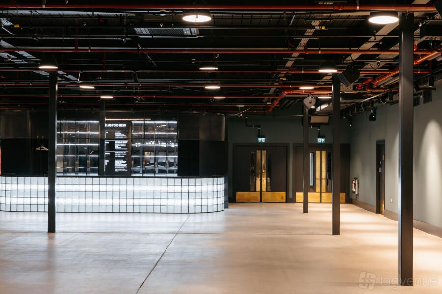 The First Floor is the largest space in the venue, with over 825 square metres of flexible event space. The dramatic high ceilings, with exposed roof trusses and original crane structure, combine with state-of-the-art facilities to provide the perfect place for large-scale music and culture, dinners, exhibitions and conferences.