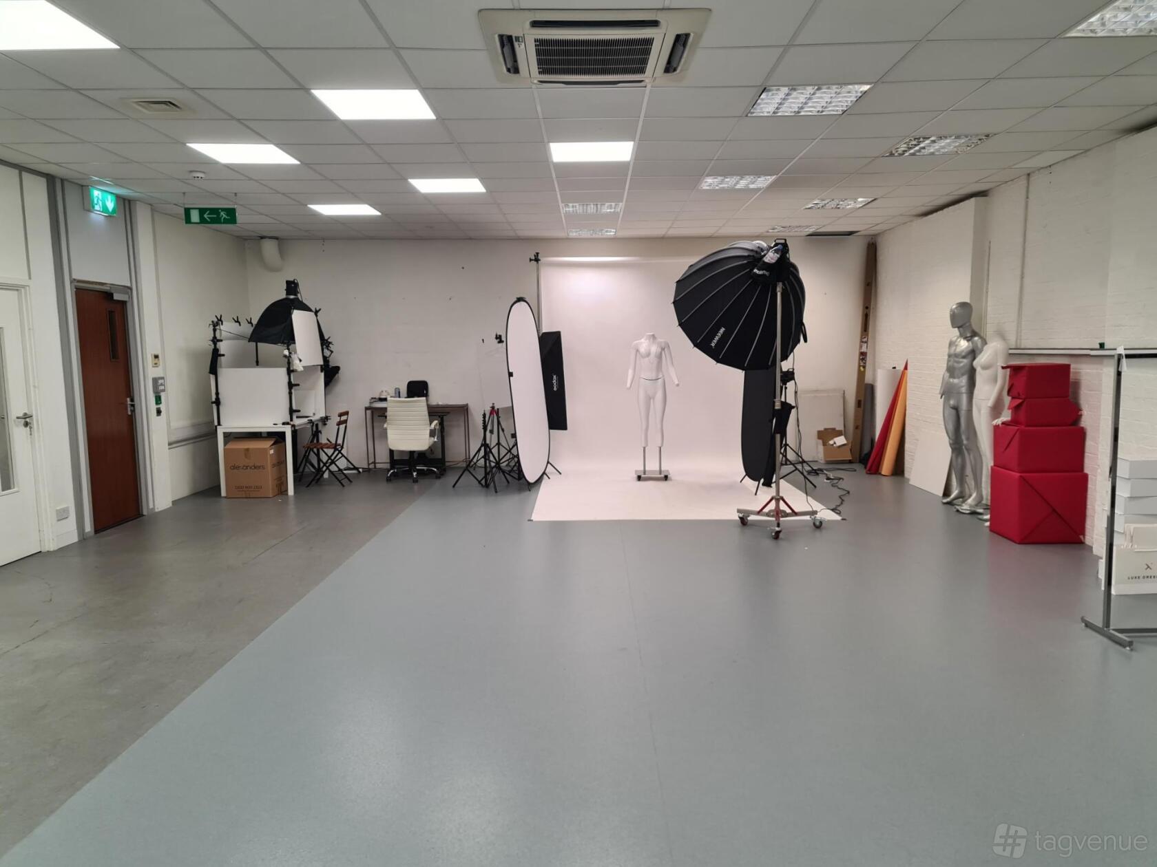 Our spacious Photo Studio is located in Kennington Business Park, near the Oval Tube Station. It's independent from the rest of the building. The studio contains lighting and some props like mannequins. Suitable for product photoshoots and available from Monday to Friday from 9.00 to 18.00 upon request.