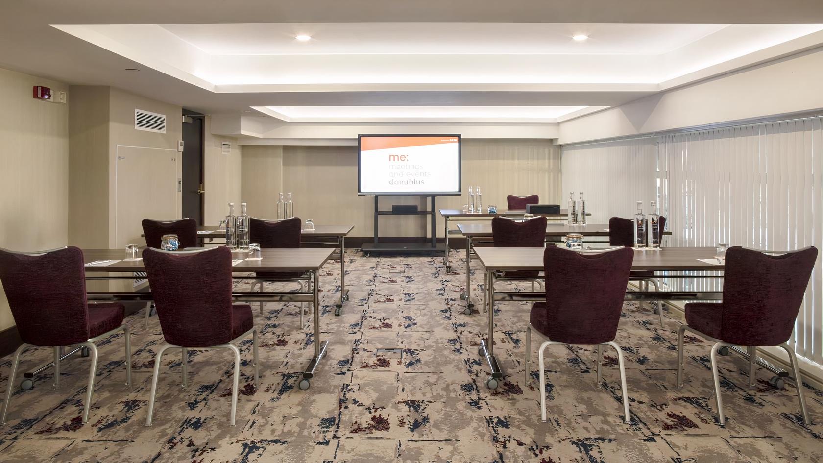 With flexible set-up options, this can accommodate up to 90 guests in a theatre layout or 40 in a reception or boardroom style. It is ideal for conferences, larger workshops, and private gatherings. The room provides AV capabilities with a TV for any presentation or media needs.