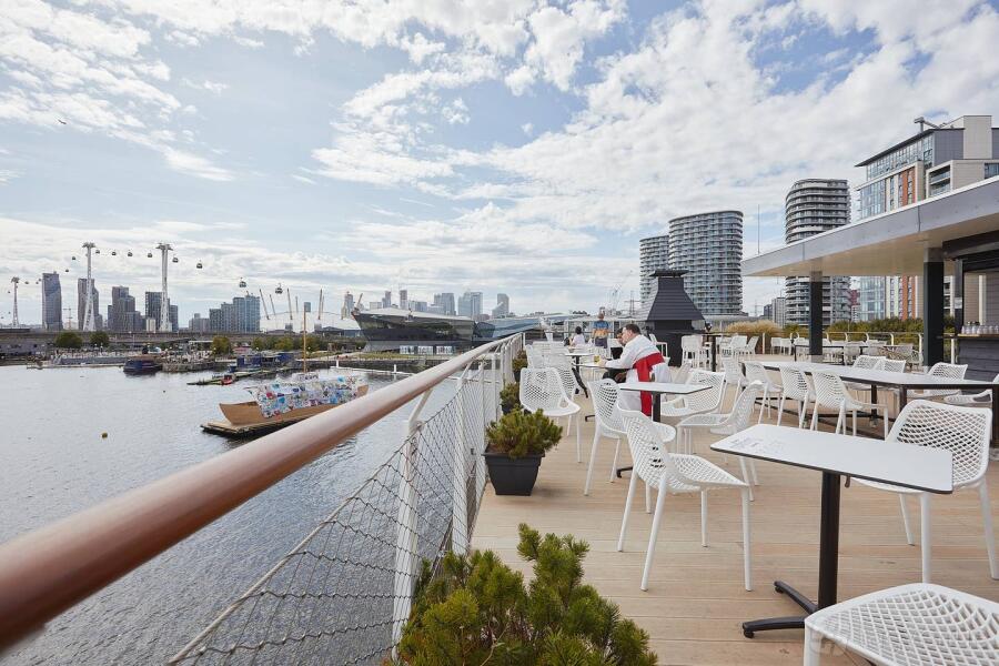 The Globe is a great space for a private dining or casual drinks reception. It can cater up to 50 guests around a dining table or 60 people for a semi-private breakfast, hot fork buffet lunch or cocktail-style reception. The whole space is flooded with natural light and has impressive water views across the Royal Docks.