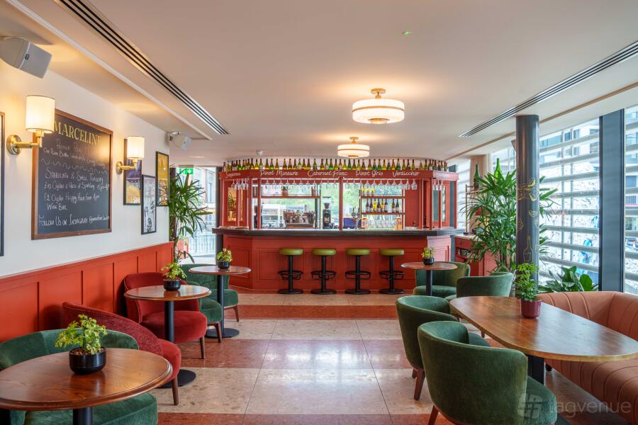 The whole venue at Marceline has a capacity of 330 guests. There are various seating options available; chairs, stools, armchairs, and sofas.