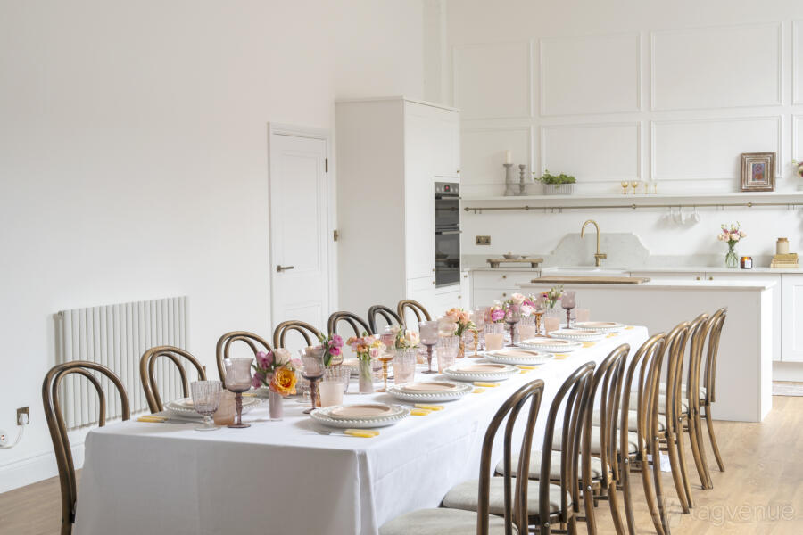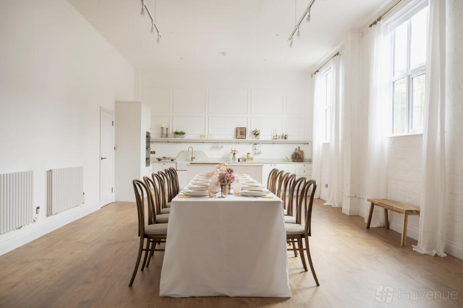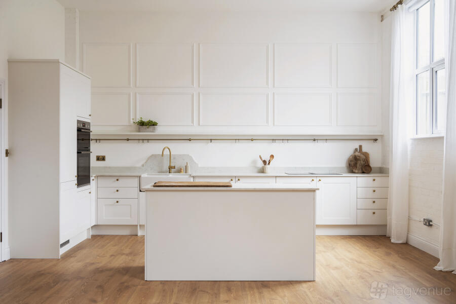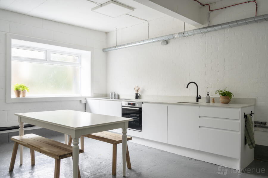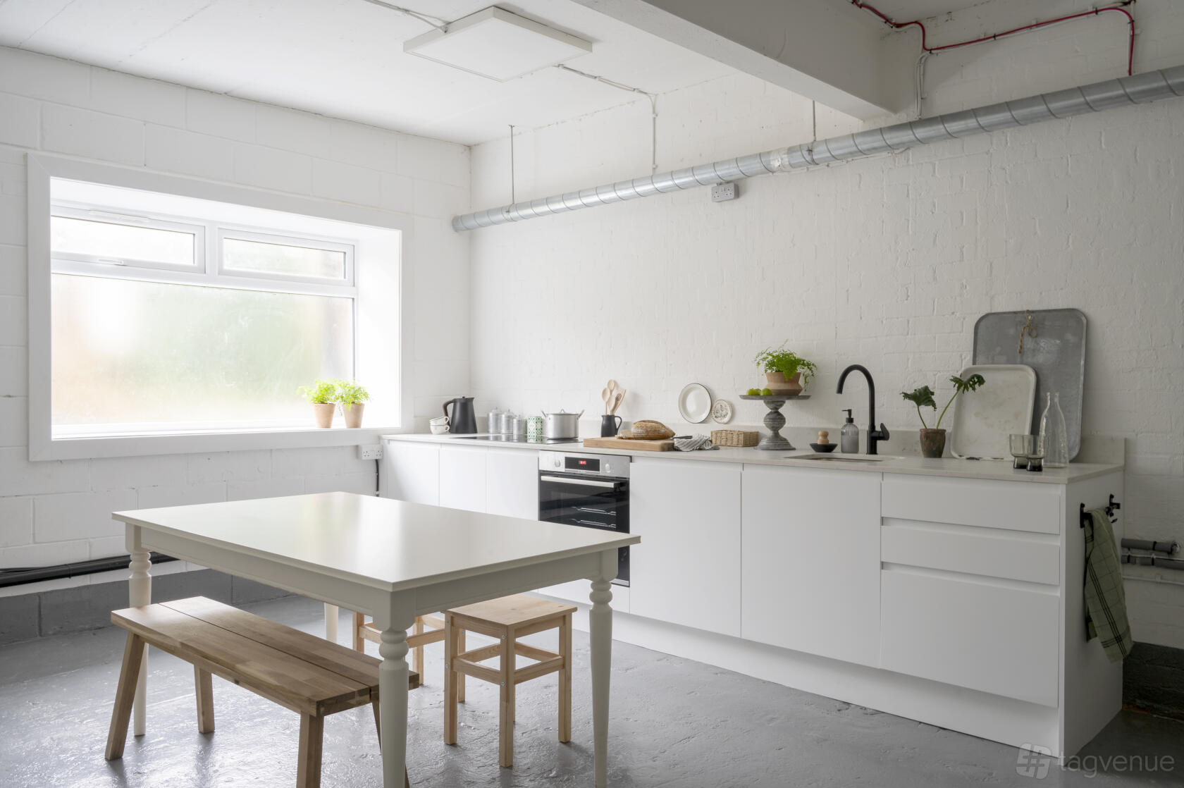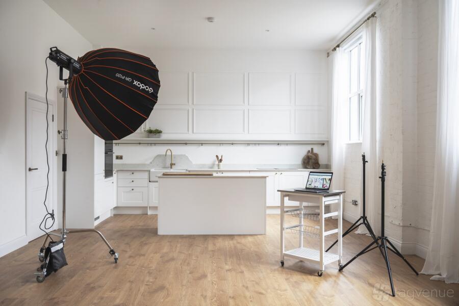 Studio B has a bespoke kitchen to capture the smaller-scale setups. This studio complements the larger space