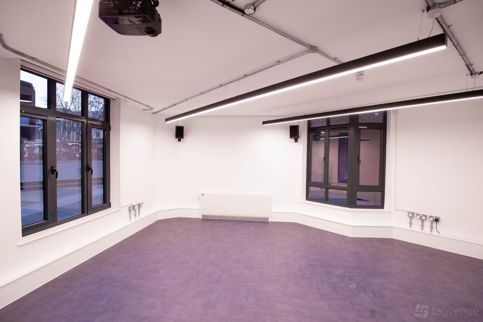 Studio 1 is a multi-purpose room, ideal for classes, film screenings, meetings or small gatherings. It has two windows overlooking the World's End Piazza, each with electronic blackout blinds if you need more privacy.