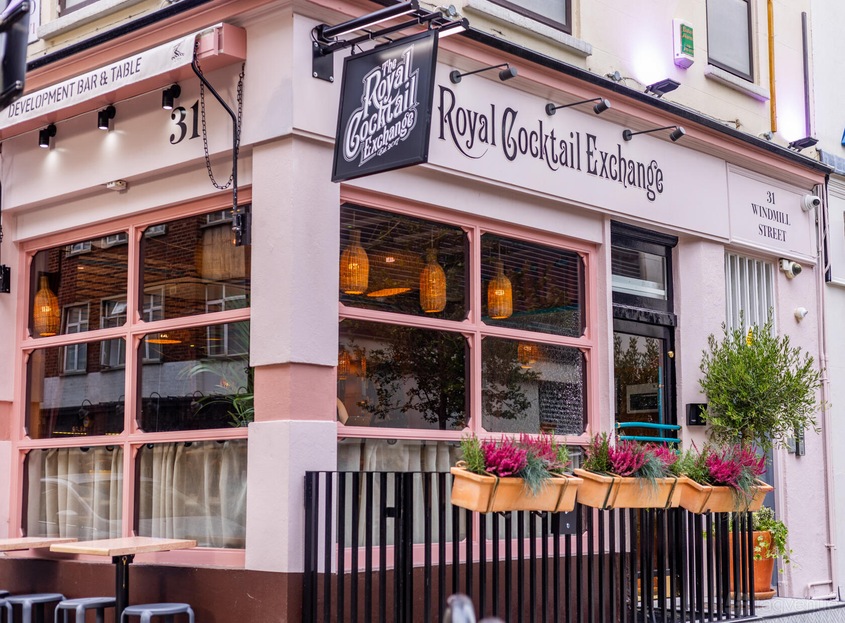 The Exchange is our ground floor - a versatile spot for the right party size - a bunch of tables and rest areas in a space that can either feel light and airy, or a little more dark and sexy as the evening goes on. There are several outdoor tables (not included in the floor area sizing), a fully kitted bar with the house menu and several draft cocktails for rapid service. Our full food menu is also available, as well as seasonal selections of quality wines and beers.