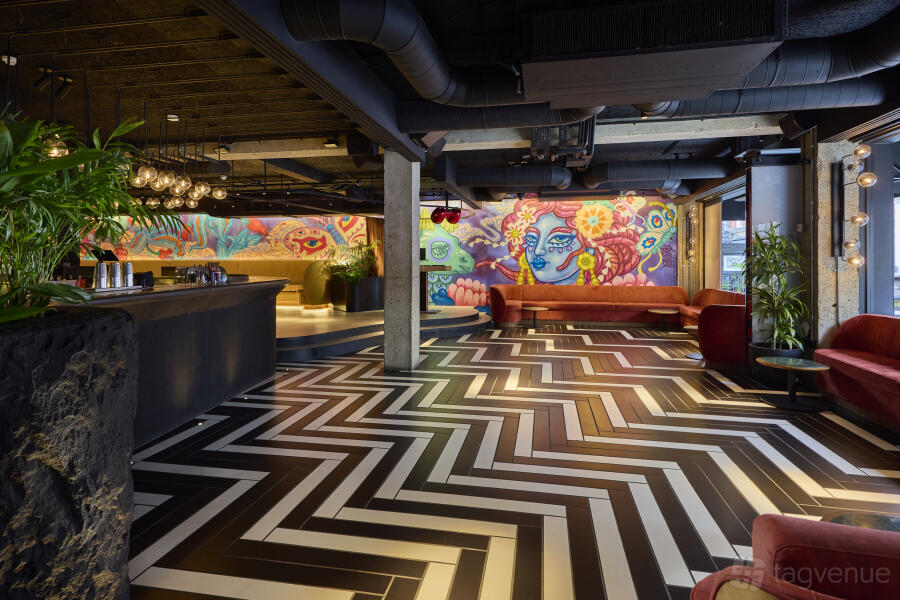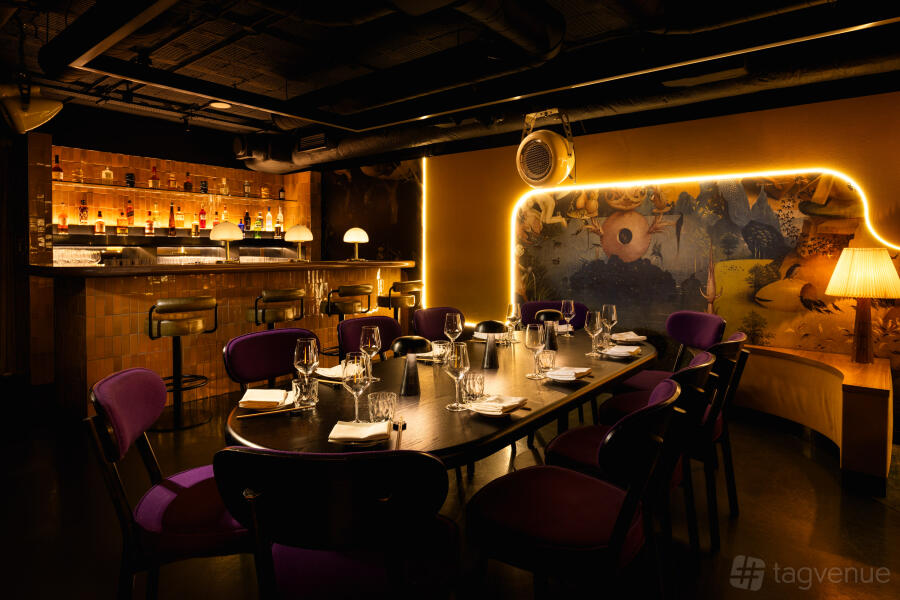 When the sun shines, retractable glass walls expose the lounge to the street allowing guests to spill into Soho and take in the sights and sounds of the bustling neighbourhood. Adjacent to the bar is a raised dining area complete with 45-cover a-la-carte restaurant.