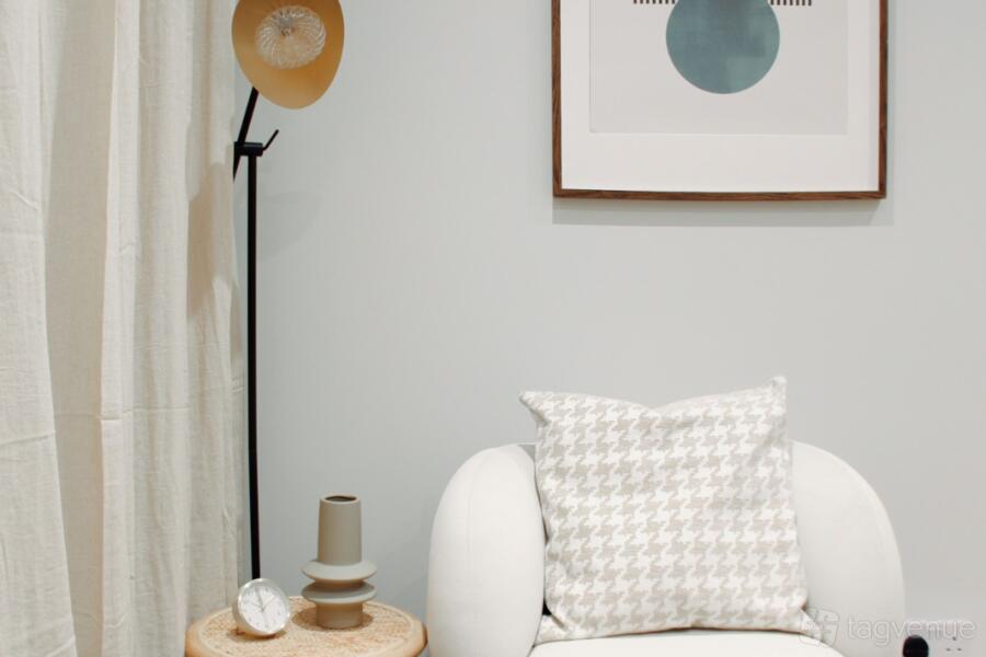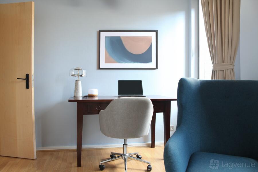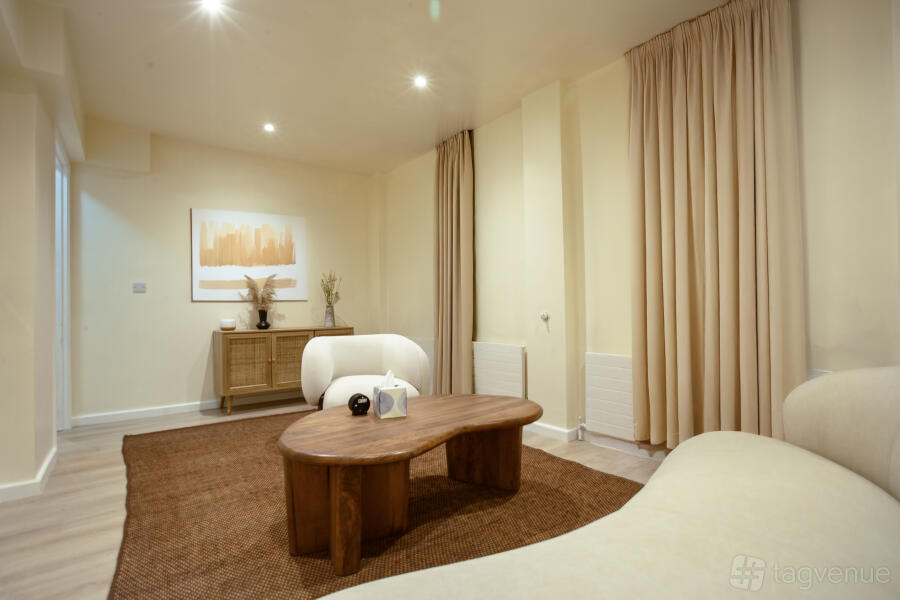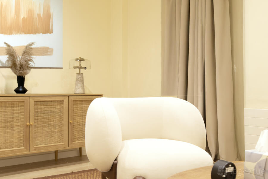 The Cypress Room is a warm and inviting space, ideal for one-to-one therapy sessions. Decorated in neutral tones, natural wood finishes, and curated interiors, it offers a serene and private atmosphere.