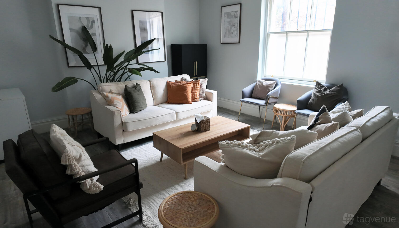 Thoughtfully furnished with cosy sofas, elegant armchairs, and a stylish wooden coffee table, the Sequoia Room balances comfort and professionalism. Soft, neutral tones, textured fabrics, and tasteful décor create a peaceful and grounded atmosphere, while warm lighting ensures a welcoming feel.