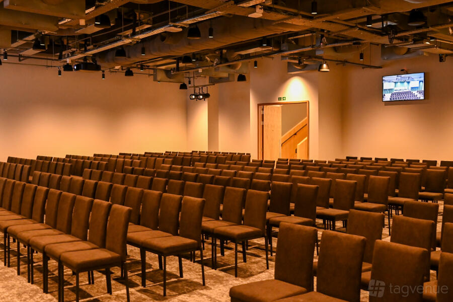Our venue can accommodate up to 350 guests in theatre-style or 200 in cabaret-style. Additional breakout rooms are positioned throughout the venue for private catering and up to 25 exhibition stands.