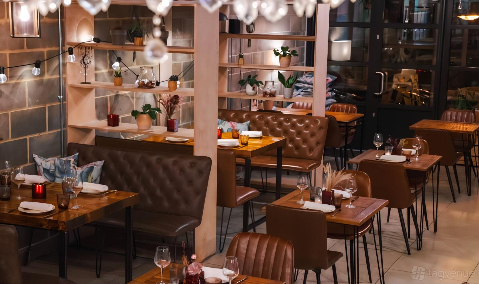 Burnt Umber Brasserie is a restaurant serving modern European cuisine, inspired by Balkan traditions and sharing plate dinners. The interior combines modern industrial style with elegant elements.