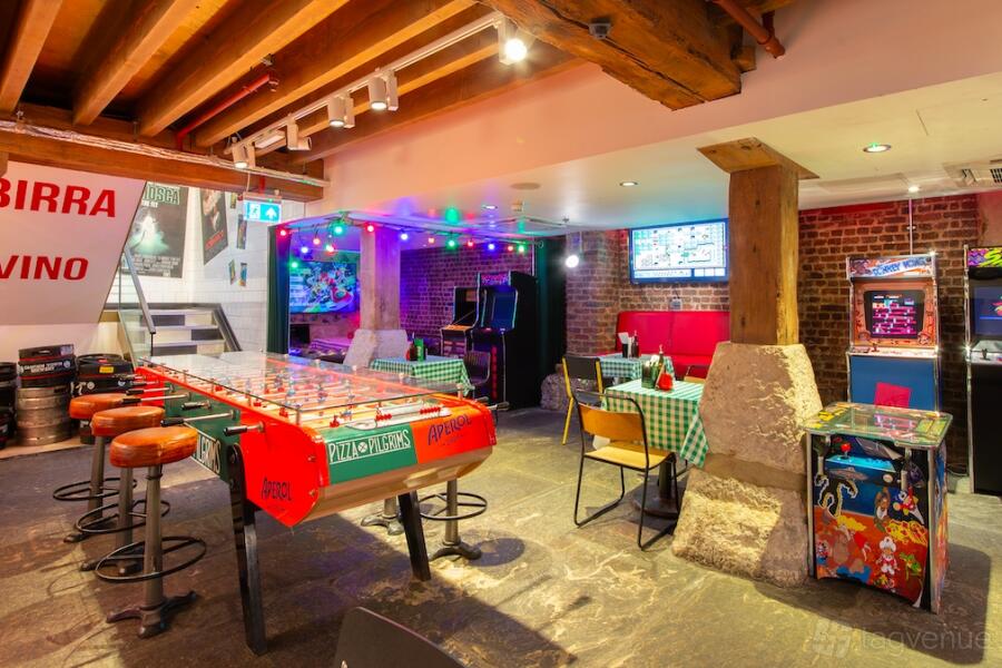 The Playground is a private gaming basement packed with entertainment. With arcade machines, foosball, retro board games, SNES & PS2 consoles, and a cocktail bar, it's the ultimate spot for team away days, birthday celebrations, and festive gatherings.