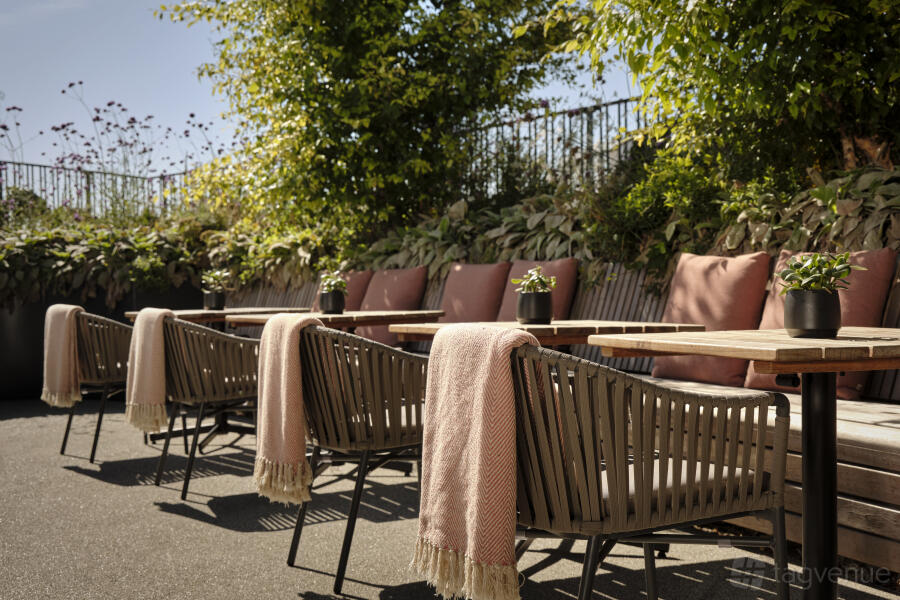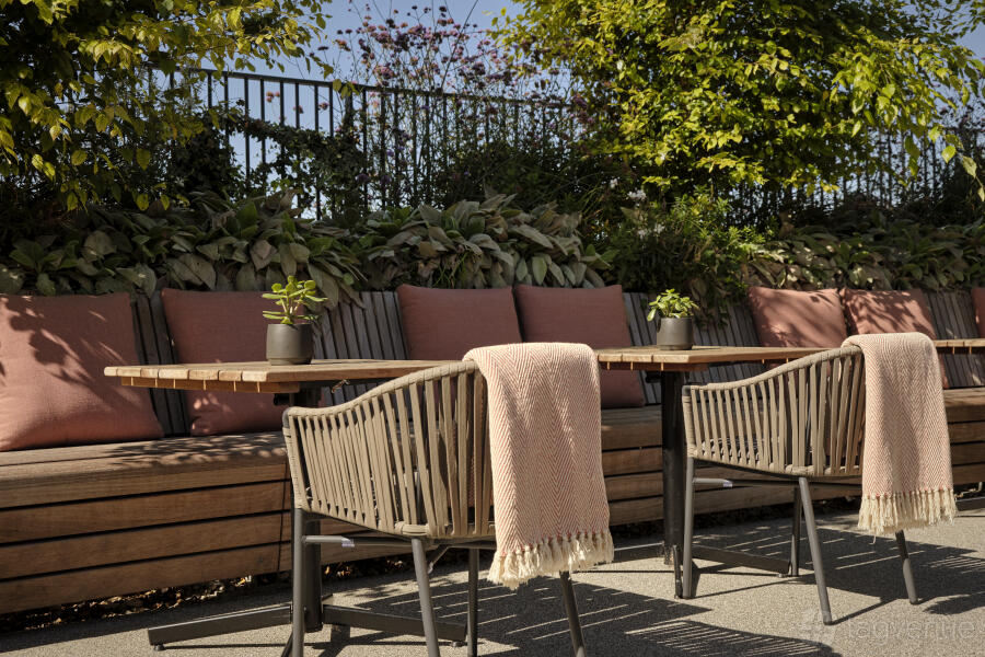 The terrace is located on the ground floor of the hotel and can be hired exclusively for 60 people for drinks or 20 people for a seated dinner, or semi-private if you prefer.